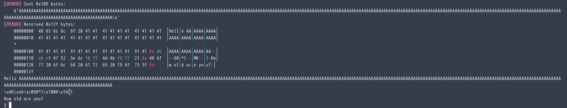 Hãy thử nhập 263 chữ A ( tất nhiên byte thứ 264 sẽ là `\n` )
