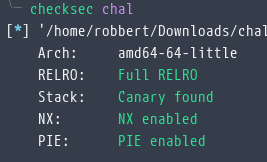 <figure><img src="https://490253784-files.gitbook.io/~/files/v0/b/gitbook-x-prod.appspot.com/o/spaces%2FPUciVRKC9aAQtoyYpIe9%2Fuploads%2Fw2GAZh5VOuVbXSh1TOig%2F2022-08-30-221249_267x162_scrot.png?alt=media&#x26;token=8aaa213e-de94-459d-89cf-106905b6bb7b" alt=""><figcaption><p>Checksec</p></figcaption></figure>