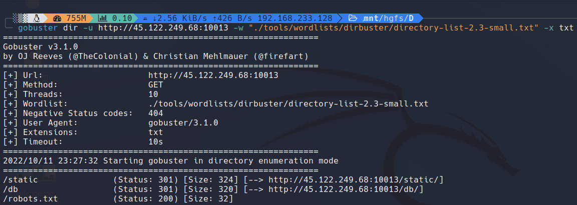 Đầu tiên mình sử dụng gobuster để scan